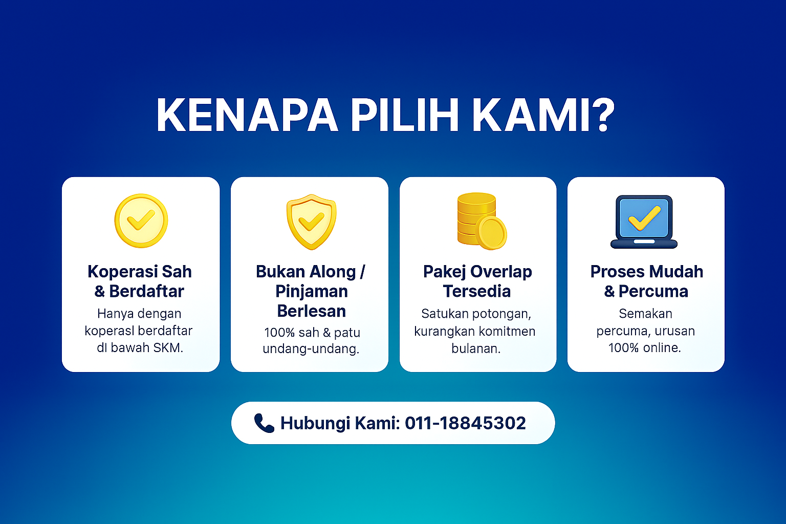 Kami bantu anda semak kelayakan dan pilih koperasi terbaik — semuanya 100% sah, mudah & selamat.